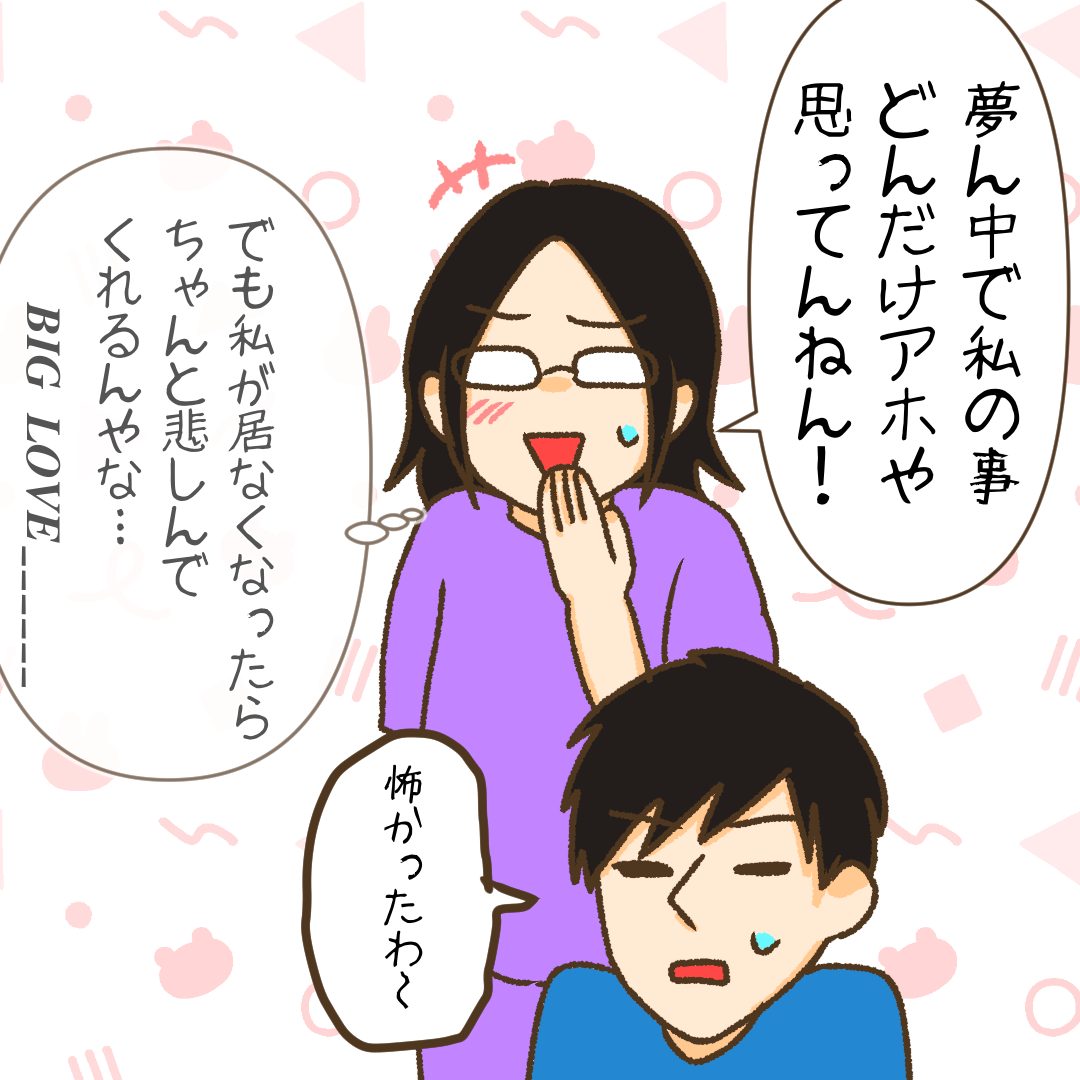 怖い夢見た…ってその内容が私に関係することで、さらに居なくなったら頭の中真っ白になっちゃうくらい絶望してくれるなんて…😳普段そっけない夫なので、意外すぎてびっくりしました😂