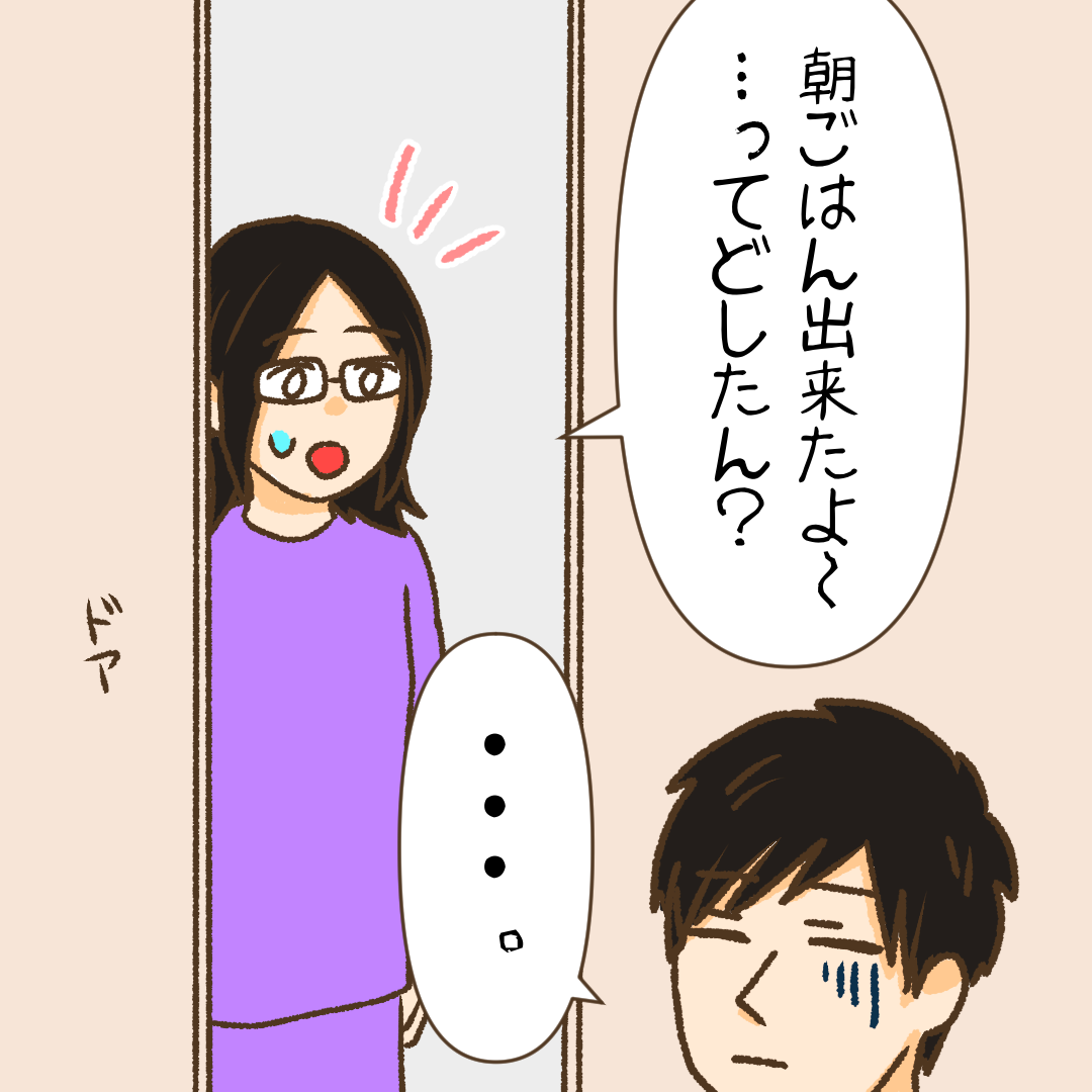 「朝ごはん出来たよ〜」と夫に伝えに行くと何やらいつもと違う雰囲気の夫。