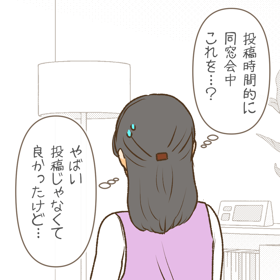 何か仕返してきたのかと思ったけど、投稿時間を見ると同窓会中に投稿していたようでした。